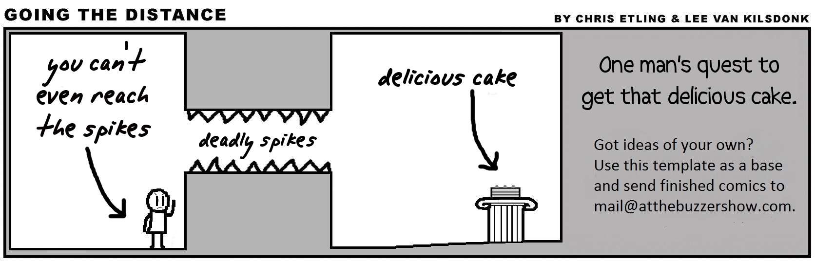 In Going the Distance, our main character, “You,” has to manage to make his way to delicious cake. Sounds simple, right? But there are deadly spikes to deal with, and a host of other problems that appear each time. Let’s just say You fails more often than You succeeds. After all, it wouldn’t be much of a quest if You could just get cake whenever You wanted, would it?