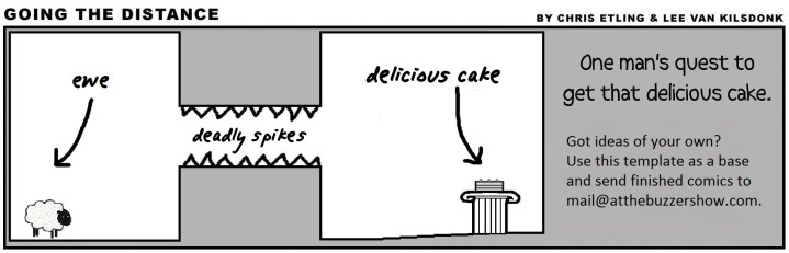 In Going the Distance, our main character, “You,” has to manage to make his way to delicious cake. Sounds simple, right? But there are deadly spikes to deal with, and a host of other problems that appear each time. Let’s just say You fails more often than You succeeds. After all, it wouldn’t be much of a quest if You could just get cake whenever You wanted, would it?