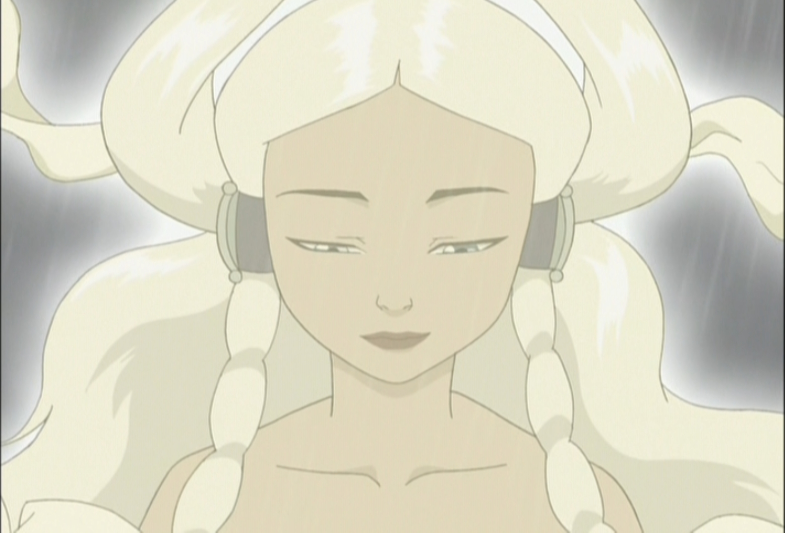 After Aang is caught in a storm in a fit of depression, Yue appears and encourages him.