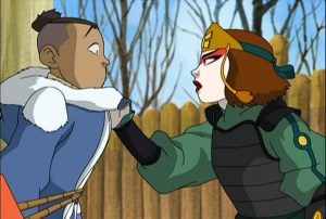 Along the same lines, Suki is a girl that doesn’t need saving. At least, not in your typical sense. Sokka needs more saving in the time-frame of the show then she ever does. Sure she ends up getting captured and thrown in prison, but at no point is she made to be a “prisoner” in the eyes of the viewer. She handles her time in prison just as well (if not better) then many of the beefy dudes stuck in there with her, and were it not for her quick thinking and reflexes Sokka and Zuko never would have escaped the prison either. Sokka is the show’s comic relief, sure, but he’s also The Last Airbender‘s “regular” warrior dude. Yet despite the fact that he is an intelligent and skilled warrior, the girl who ends up being his soul mate is arguable a more fearsome warrior then himself. If something were to threaten them, it would probably be her doing the saving. In order to be with Suki, Sokka has to swallow his pride (of which there is plenty of) and accept that fact.