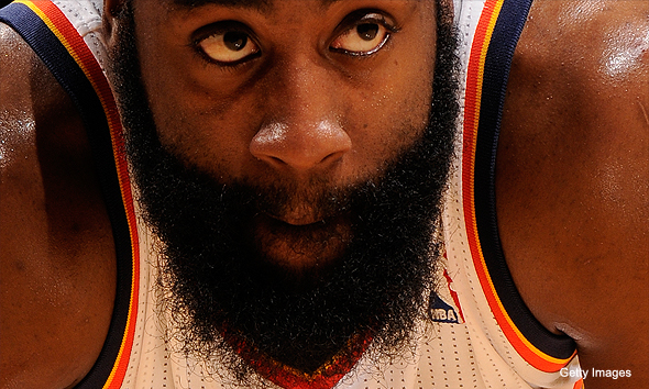 6:32 Great to see the ASU guy Harden out there contributing despite that ferocious, hideous beard. He gets clobbered as he hits the buzzer beater to cut the Heat lead to 7 at the end of the first. Come on Refs…you can’t start missing calls now.
