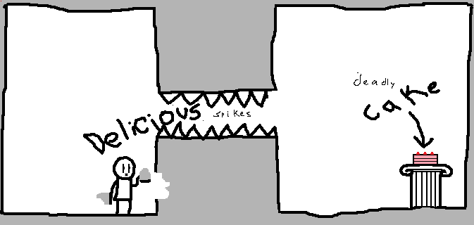 So many questions. If the spikes are delicious, why is You eating the wall? What makes the cake so deadly? What makes the spikes so tasty? Why didn’t we ever do a comic where the spikes became teeth and chomped on our hero? We may never know the answers to any of these.