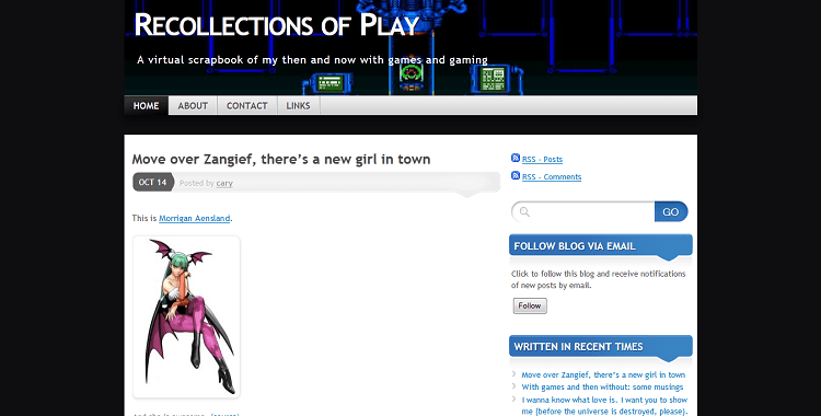 Recollections of Play is nearing its one-year anniversary, and in that time cary has posted a couple of times a week on average pretty consistently. As we mentioned on the show a couple episodes, I think that consistency is one of the biggest factors in building an audience and growing a website, and in the case of RoP it shows — most of her posts get comments from a variety of people.