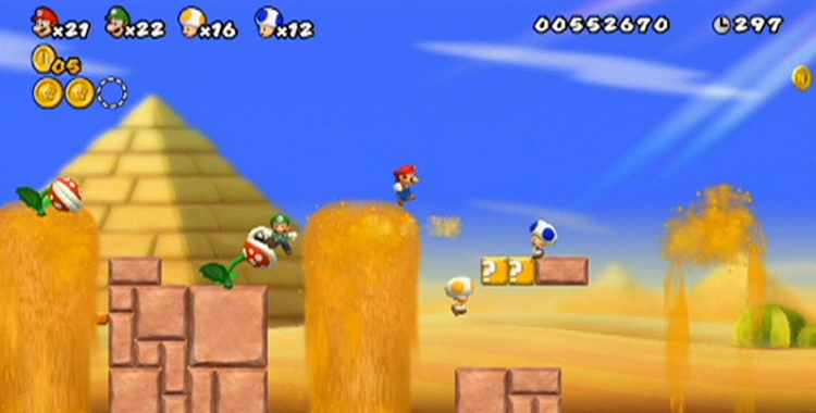 We’ve made it to the desert, which must mean it’s time to get serious. Unfortunately, Yellow Toad is stoned out of his mind, Blue Toad is too concerned with finding his parents’ killer, and Luigi…well, he’s Luigi. These people are supposed to be helping Mario rescue Peach, but I’m starting to suspect that they’re actually Bowser’s operatives, sent to hinder Mario every step of the way.