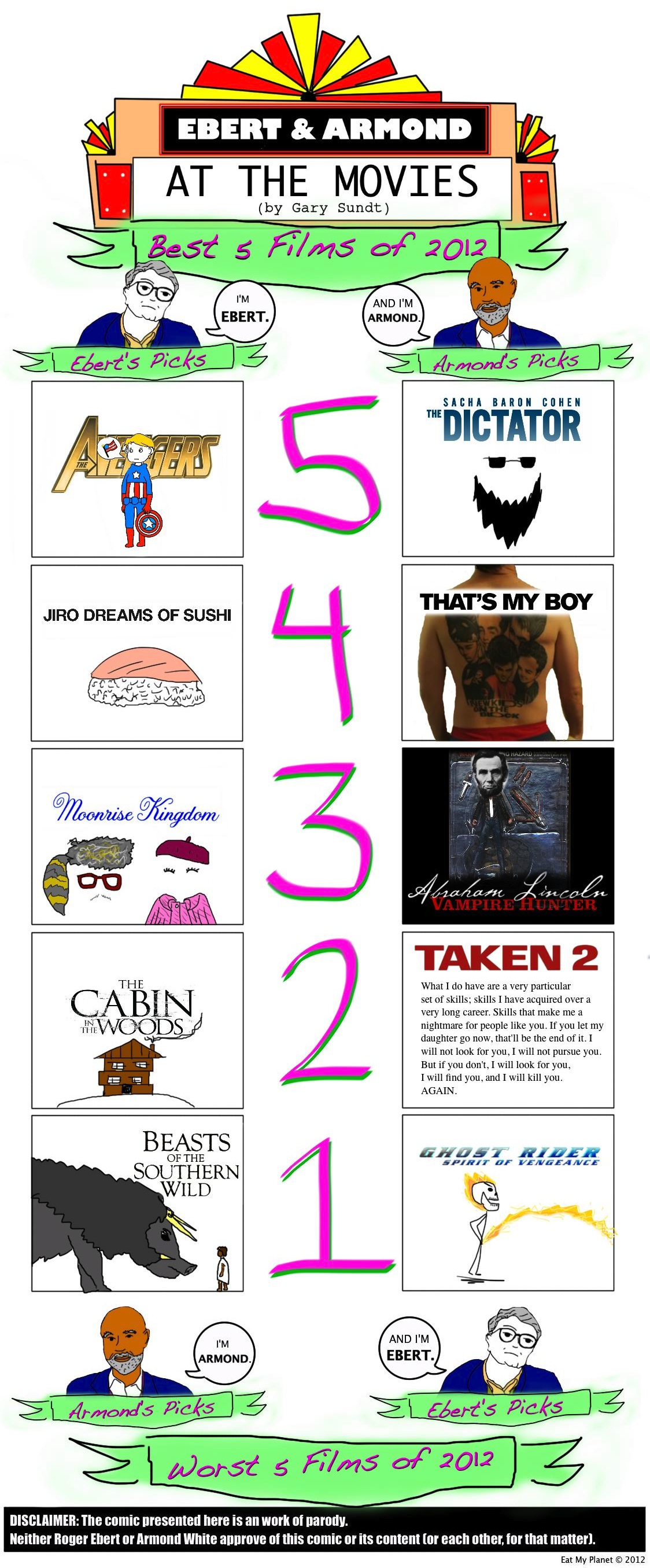 Roger Ebert is the world’s most respected film critic. Armond White is its least. See what happens when they hang out every week here at At The Buzzer with Gary Sundt’s new comic-review hybrid, “Ebert & Armond: At The Movies”.