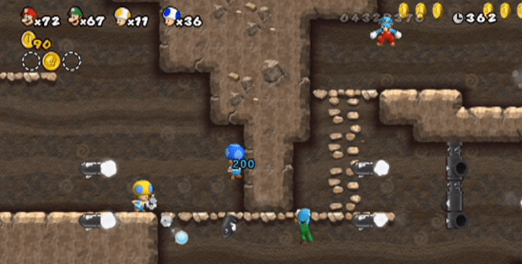 Not pictured: 390 Bullet Bills all hit Yellow Toad simultaneously.