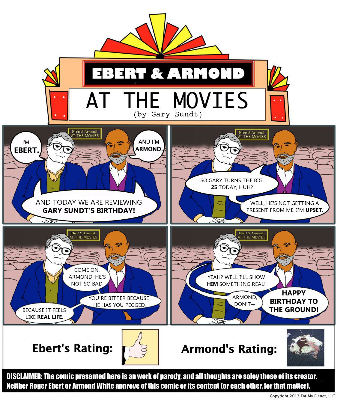 Roger Ebert is the world’s most respected film critic. Armond White is its least. See what happens when they hang out every week here at At The Buzzer with Gary Sundt’s new comic-review hybrid, “Ebert & Armond: At The Movies”.