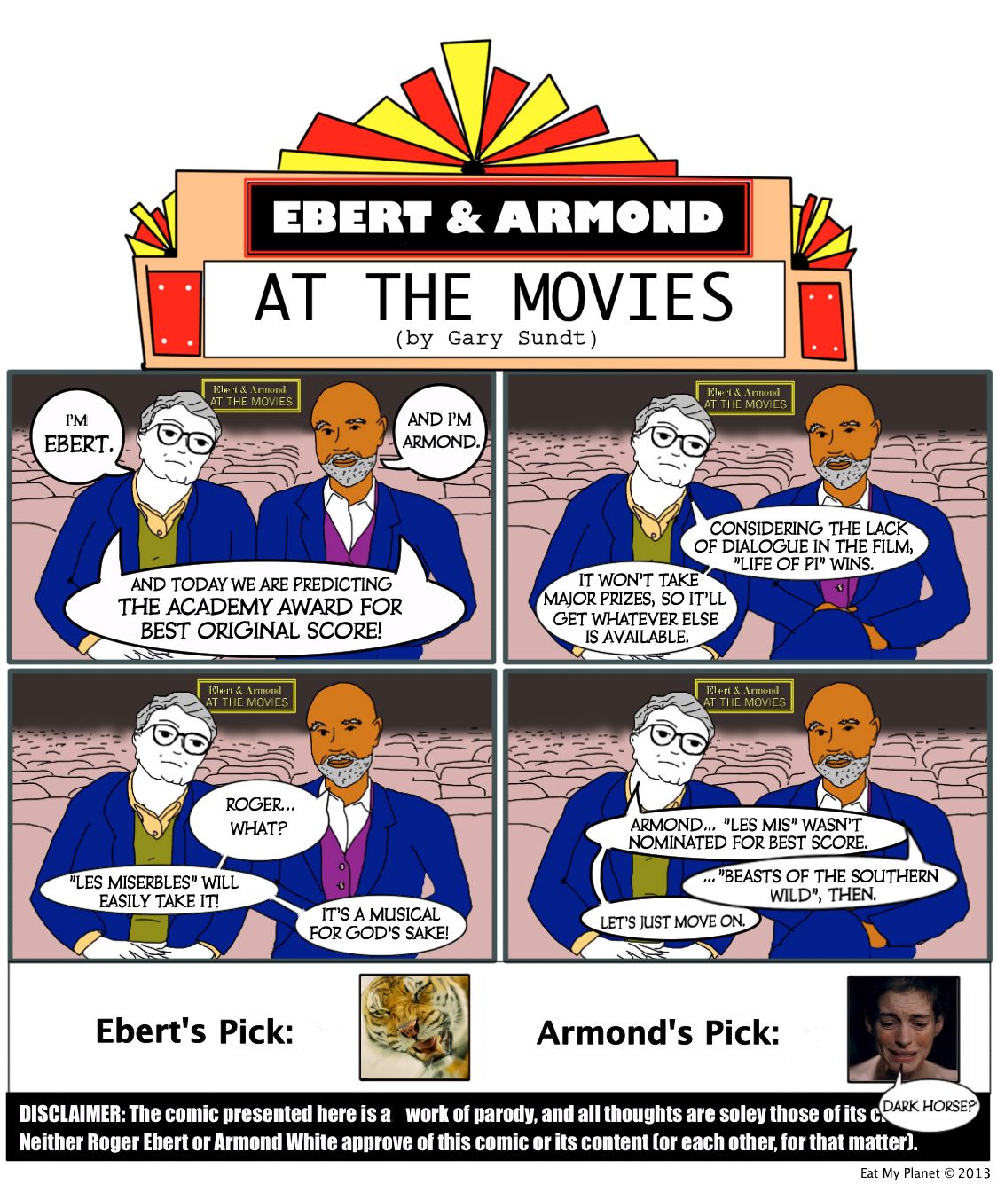 Roger Ebert is the world’s most respected film critic. Armond White is its least. See what happens when they hang out every week here at At The Buzzer with Gary Sundt’s new comic-review hybrid, “Ebert & Armond: At The Movies”.