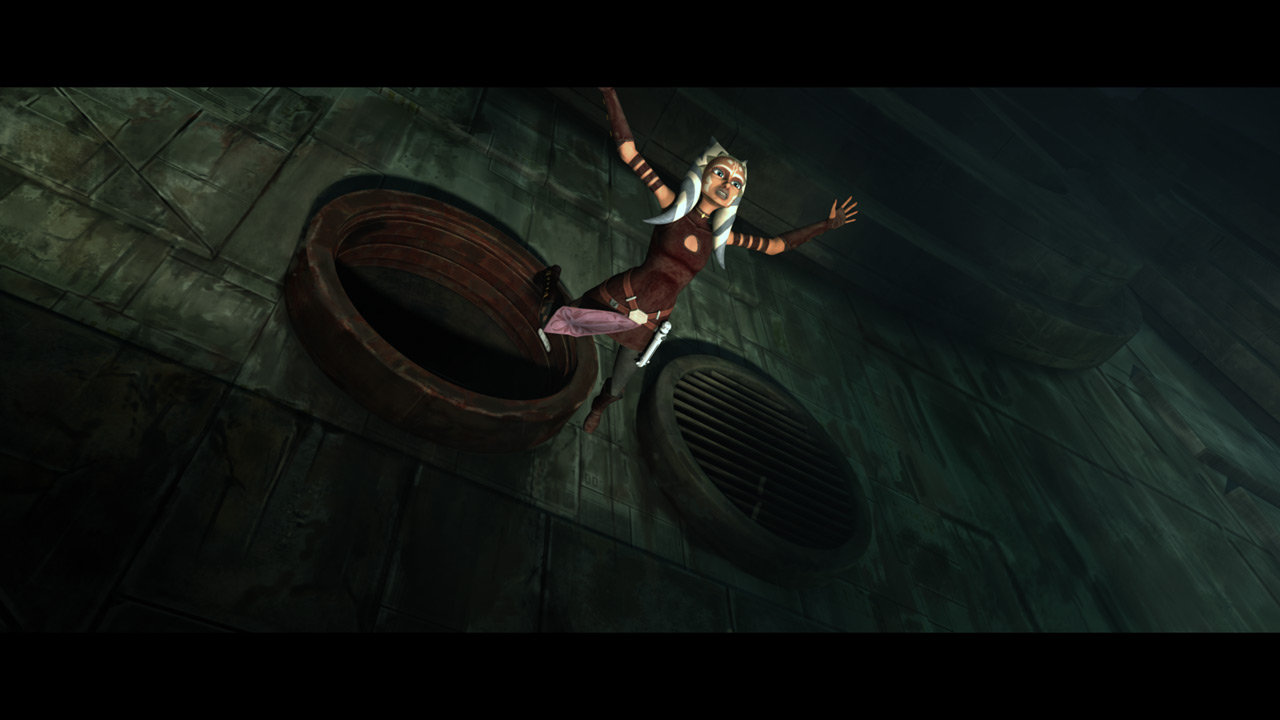 Only to end with Ahsoka standing at the edge of pipe, ALA The Fugitive, with Anakin pleading for her to return to the Jedi Order.