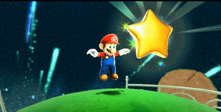 Star, you and Mario need to float together. Ignore those fireworks in the background. Just state at each other lovingly and let the magic happen.
