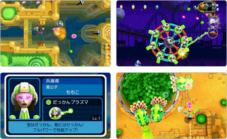 As it turns out, you can shoot in several directions – any one of 8 directions, to be precise. Without the invincibility powerup, your ship is capable of firing in up to 4 directions at the same time: three cannons spread in front, and one to the rear. These cannons can be rotated to the cardinal directions (up, down, etc.) or any of the directions in between. As you may have already guessed, this is how StreetPass comes into play. You start with one of up to 10 friends already in your craft, and the rest you rescue along the course of a given mission. The math isn’t adding up, you say? 10 friends and only 4 guns? Additional friends are used to “upgrade” one of your weapons; two or more friends in a given cannon direction will give you a level 2 or higher weapon in that direction.