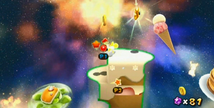 What should Mario’s main goal be here? The floating star that he can’t eat? Or the giant cake, ice cream and pancakes that me might have a shot with?