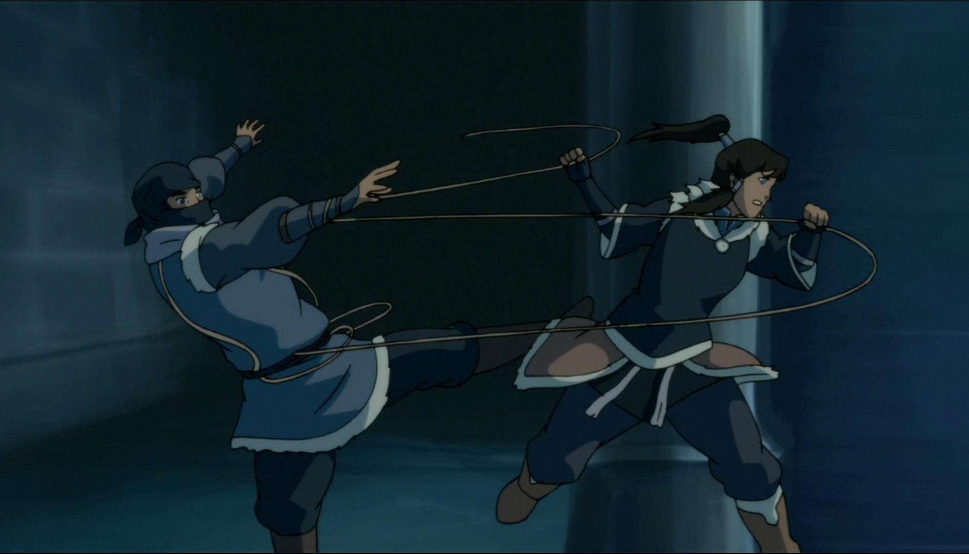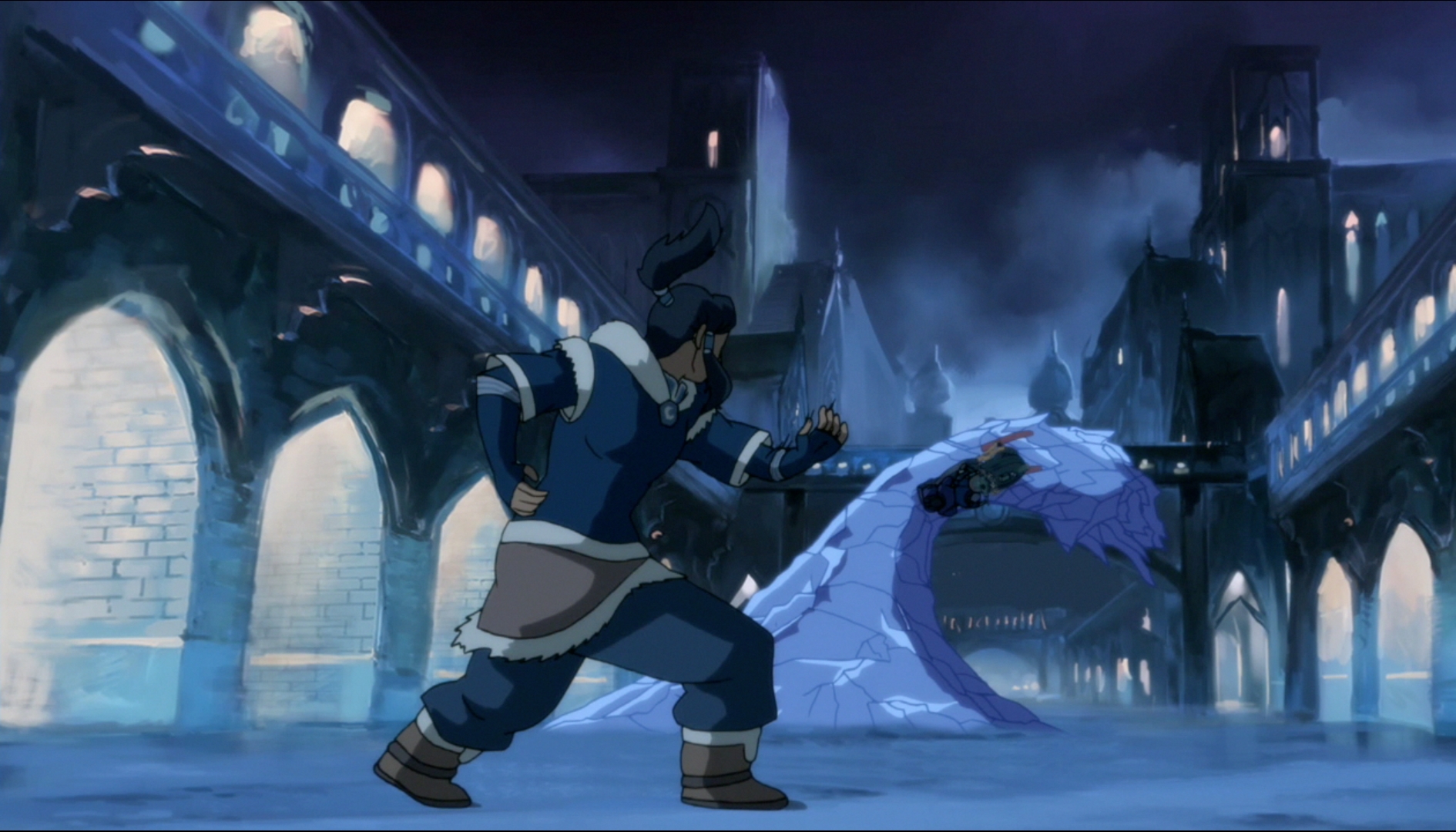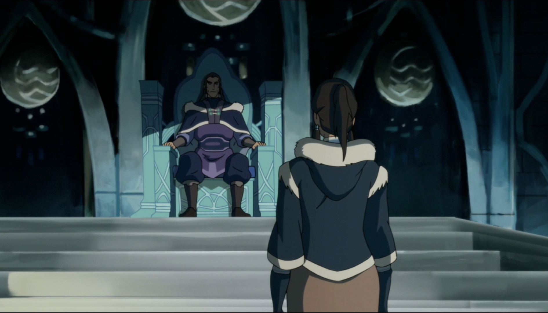 On the one hand, Tonraq has always attempted to protect her and hold her back; yet her uncle is MORE than willing to teach her things she needs to know and help her become a more well rounded Avatar. But on the other hand, Unalaq is esentially forcing the Southern Water Tribe to obey his rule, and enforcing that rule with a tyrants fists. The question becomes one of importance, is it more important for Korra to learn new abilities to become a better Avatar? Or keep the peace and protect the people she’s supposed to protect? She’s pretty much screwed either way, and this episode really made it obvious how hard all this was on Korra.