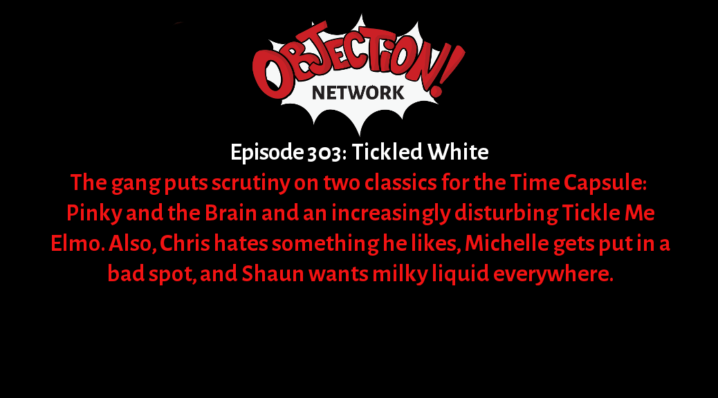 Episode 303: Tickled White — The gang puts scrutiny on two classics for the Time Capsule: Pinky and the Brain and an increasingly disturbing Tickle Me Elmo. Also, Chris hates something he likes, Michelle gets put in a bad spot, and Shaun wants milky liquid everywhere.