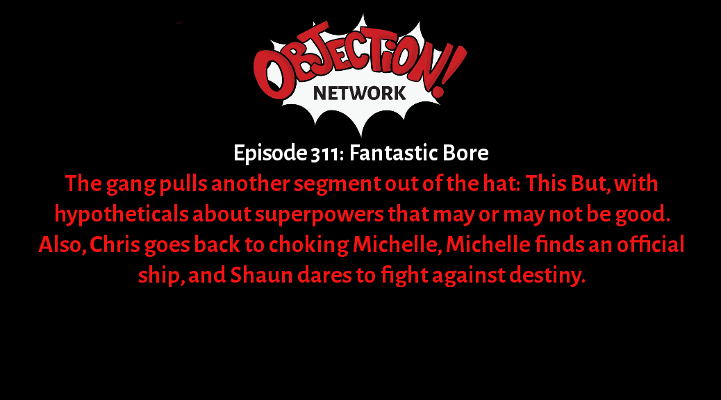Episode 311: Fantastic Bore — The gang pulls another segment out of the hat: This But, with hypotheticals about superpowers that may or may not be good. Also, Chris goes back to choking Michelle, Michelle finds an official ship, and Shaun dares to fight against destiny.
