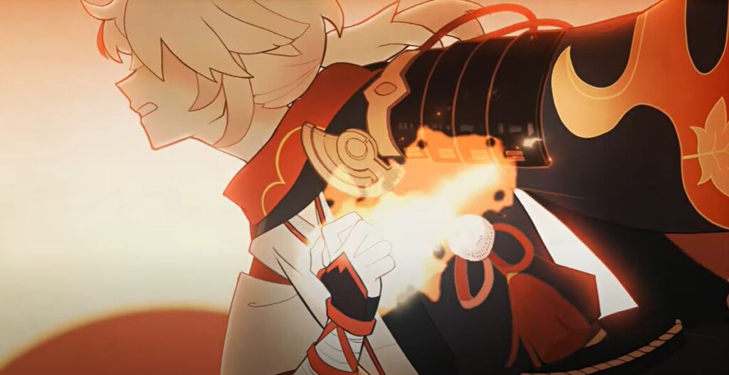 What first drew me to Kazuha’s character wasn’t just his cool design or fun playstyle that was showcased so beautifully in his Samurai Champloo-inspired demo trailer; it was his backstory. Animated in a unique 2D art style that’s almost reminiscent of stop motion at times, Kazuha’s backstory is one of tragedy that is intrinsically tied to the main plot in Inazuma.