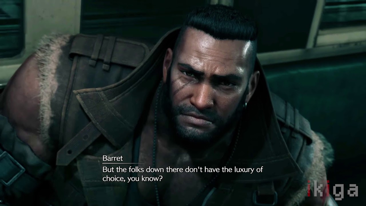 I’ve always liked Tifa and felt she had the most depth in the original game, and luckily the Remake doesn’t detract from the good aspects of her character and continues her development in an organic and positive way. Her moral dilemma around what Avalanche is doing, and feeling trapped as a result, is really compelling. She supports the cause and the fight for the greater good, but questions the violence and potential consequences. It reinforces her compassion and caring personality.
