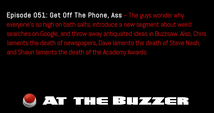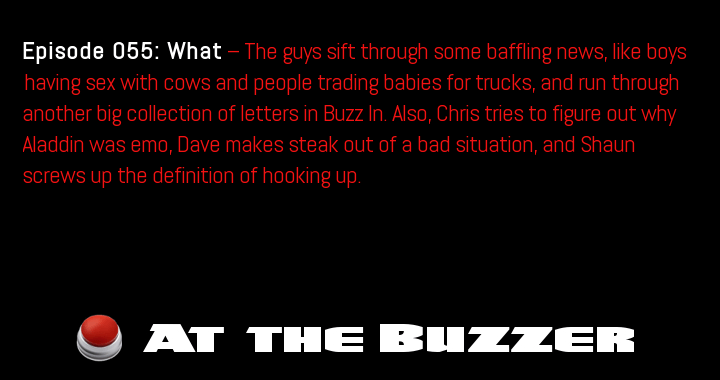 Episode 55: What — The guys sift through some baffling news, like boys having sex with cows and people trading babies for trucks, and run through another big collection of letters in Buzz In. Also, Chris tries to figure out … Continue reading At the Buzzer (08/09/12)