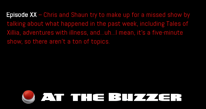 Episode XX — Chris and Shaun try to make up for a missed show by talking about what happened in the past week, including Tales of Xillia, adventures with illness, and…uh…I mean, it’s a five-minute show, so there aren’t a … Continue reading At the Buzzer Mini-Show! (08/22/13)